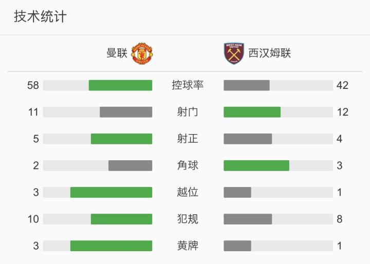 第50分钟,曼联扳平比分,马夏尔和格林伍德在禁区附近连续配合撕开对方防线,由格林伍德完成了一脚低射破门,曼联1-1西汉姆联!