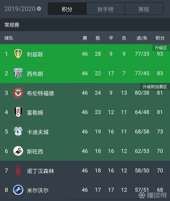 此外,布伦特福德、富勒姆、卡迪夫城和斯旺西将会参加升级附加赛,决出最后一个升级名额。
