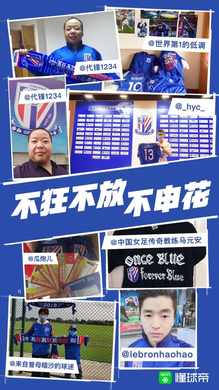 感谢@来自曾母暗沙的球迷,@lebronhaohao,@中国女足传奇教练马元安,@瓜炮儿,@_hyc_,@代锋1234,@世界第一的低调 参与本次照片征集,不狂不放不申花!