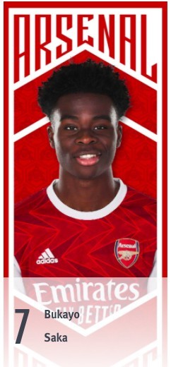 小将萨卡在本赛季表现出色,他被认为是阿森纳前场的未来。目前萨卡身穿77号球衣,之前的7号球衣主人是姆希塔良。