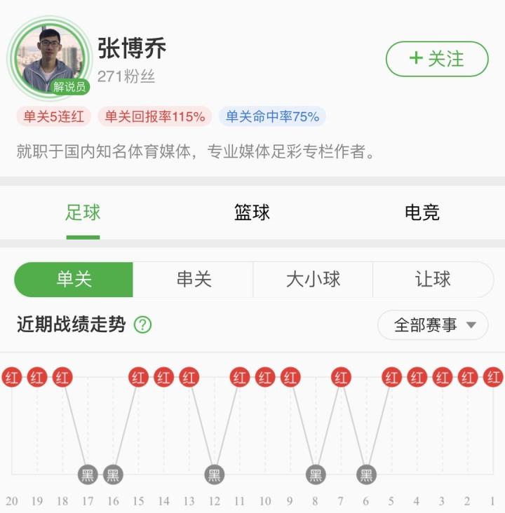 本文由懂彩号专家张博乔撰稿,其为懂球帝解说员,最高13连红,曾多次中超单轮命中8场,点击即可进入张博乔的个人主页,关注后就能随时收到该专家的精准推荐!