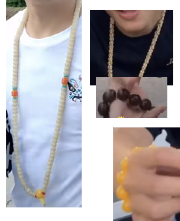 大金链子已是旧日关东大哥的哀伤,现在街溜子的心里只有可以彰显文化与品位的念珠和手串,主要是告诉你尊而不秀、富而不俗,“真人不露相,珠子盘得亮”。
