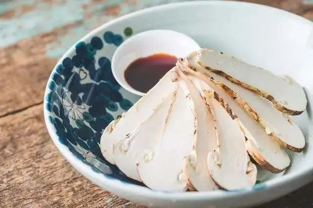 洗净、切片,沾点特制酱油生吃,最能尝出松茸的本味。