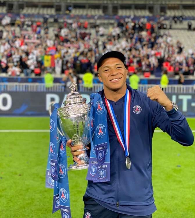 在今天凌晨结束的法国杯决赛中,巴黎圣日耳曼1-0击败圣埃蒂安夺冠,本场受伤下场的姆巴佩在赛后晒出了自己捧杯的照片。
