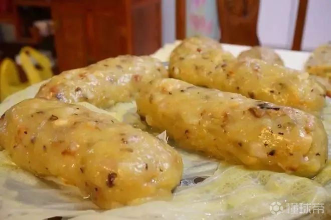 甘筒就是马铃薯,把马铃薯碾成泥,和上面粉再加入香菇虾米瘦肉等配料,搓成长条状上锅蒸熟