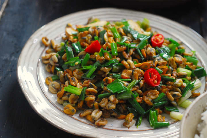 新鲜的薄壳除了制成薄壳米,还能与它的绝配搭档组成另一道美味:“金不换”炒鲜薄壳。