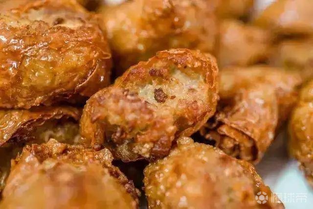腐皮包裹着五花肉、马蹄、鸡蛋、油豆皮,蒸熟后放凉,再下锅炸至金黄