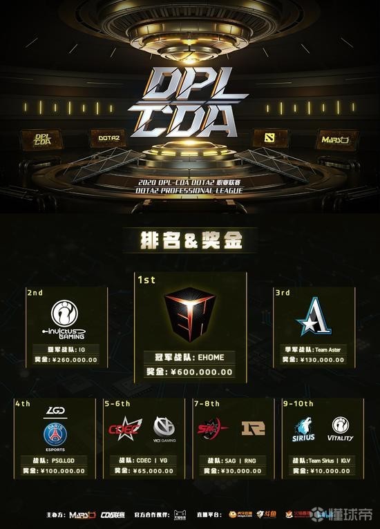 DPL-CDA S1具体最终排名及奖金分布: