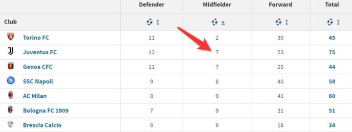 还有一项数据令人惊讶,尤文本赛季至今的75个进球中只有7粒是由中场球员打进,这个数字使尤文和热那亚并列为中场进球第二少的球队,总进球数同样超过70个的亚特兰大、国米、拉齐奥和罗马的中场球员进球都在17个以上。虽然这项数据不能说明所有,但足以证明尤文中场让萨里有多么头疼。
