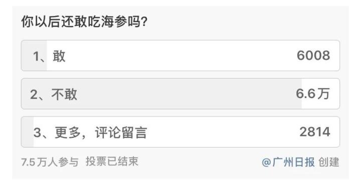微博发起的一项投票结果,绝大部分网友表示不敢再吃海参/广州日报