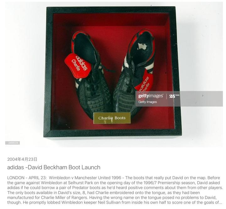 但德产mtm谈何容易,制作一双adidas德产定制球鞋要按照球员脚型建立鞋楦,然后鞋子由德国工厂技师手工制作完成,整个过程需要几周,而当时离英超揭幕只有5天时间,adidas急中生智,从旗下签约球员的球鞋中,找到了一双和小贝脚差不多大的猎鹰3球鞋,这双球鞋的主人是格拉斯哥流浪者队的前腰查理.米勒。结果小贝穿着这双别人的鞋在8月17日和温布尔登的英超揭幕战中打入一脚惊天吊射。而可怜的米兰那个当时穿的球鞋居然没有刺绣,真是喧宾夺主啊。