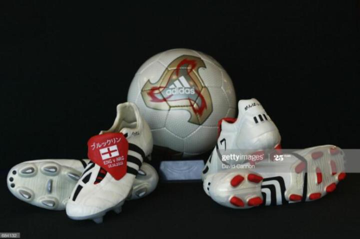 所以,2002年世界杯上,adidas又给小贝出了新花样,因为是韩日世界杯,贝克汉姆的猎鹰6球鞋上出现了日文刺绣,而且他的世界杯上的比赛居然还有比赛对战信息的刺绣。是不是太奢侈了,等于一场比赛一双鞋的概念,其实后来才发现,可能小贝的鞋子不一定每场比赛都换,但是可以换鞋舌,否则进入淘汰赛后德国adidas工厂也来不及生产鞋子再运到亚洲。