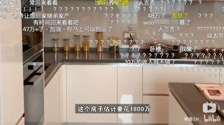 在这条彰显富贵气息视频里,包括嘉格纳的厨电、博德宝的橱柜,动辄上百万的价格让观众隔着屏幕,发出了最大声的感叹——“卧槽”“握草”和“woc”。惊讶于家具价格的吃瓜群众们,也常常被不起眼饰品的价格吓到,纷纷在弹幕上打出“???”和“啊啊啊啊”。