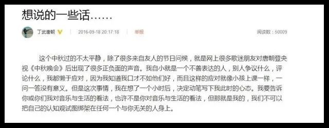 丁武以前都用歌词说说心里话,这可能是他首次在微博上说心里话