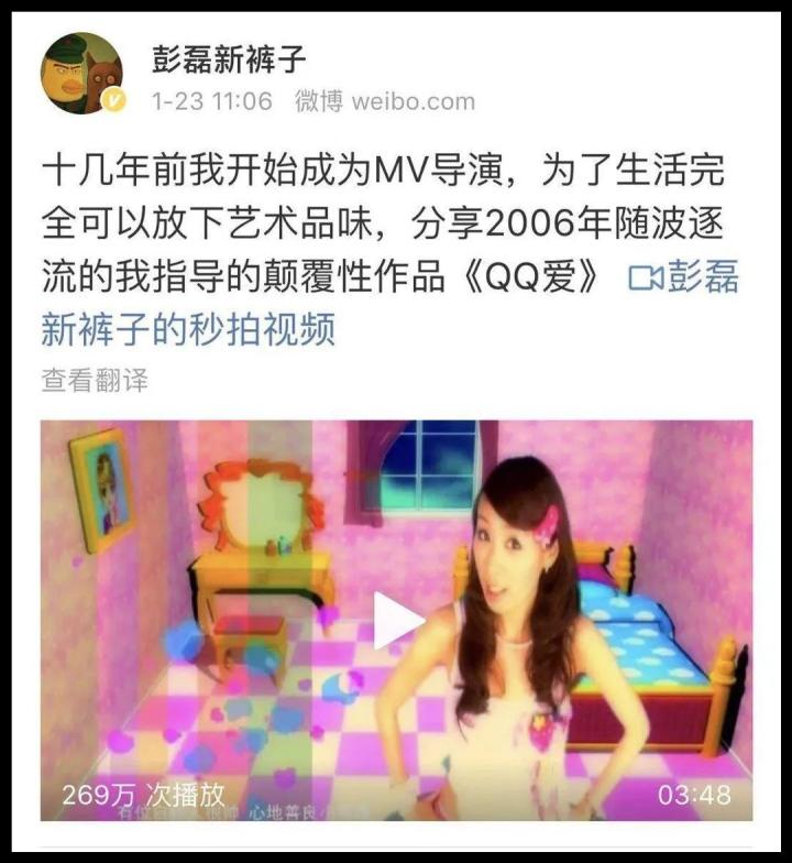 再后来2008年姚勇做出了一个音舞类游戏,叫《QQ炫舞》。巧的是,这之前一年有一首歌名字差不多叫《QQ爱》,MV是新裤子乐队彭磊拍的。