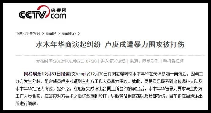 有人说,水木年华凉了,始于一次挨打,卢庚戌被打成了脑震荡。
