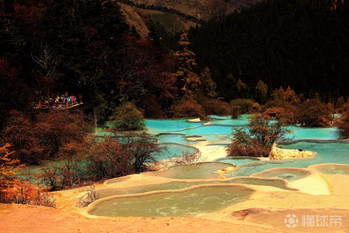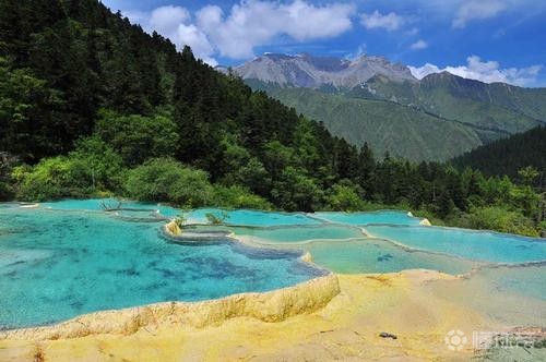 黄龙风景名胜区位于四川省阿坝藏族羌族自治州松潘县。面积700平方公里,是中国唯一保护完好的高原湿地,与九寨沟相距100千米,海拔1700-5588米。