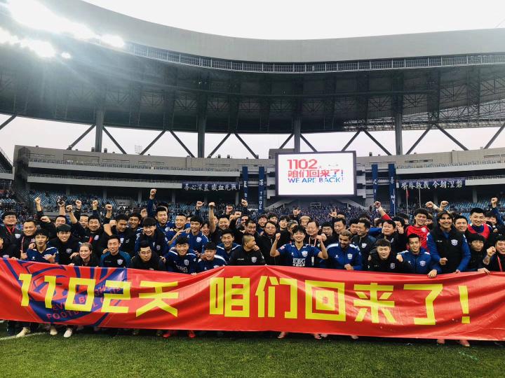 2019年11月2日,随着终场哨声的吹响,石家庄奥体中心体育场36000多名球迷陷入狂欢之中,这场对阵新疆雪豹纳欢的中甲收官战的胜利,意味着这支蓝色军团力压竞争对手贵州恒丰与长春亚泰,时隔三年重返中超。赛后,球队冲超功臣——主帅阿富辛·古特比在现场跪拜球迷的画面成了那个激情下午的经典一幕。