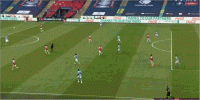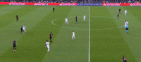 如果皇马准备从一开始就发动高强度的前场逼抢,齐达内可以使用F.巴尔韦德和莫德里奇的右路组合,前者负责驱动压迫,持球时发挥体格和冲击力优势打击坎塞洛(津琴科),后者的持球摆脱是皇马在反压迫阶段的保障。