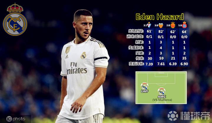 皇马出征英格兰,昔日的英超MVP贝尔和阿扎尔引人瞩目,前者落选大名单,后者自然成为了焦点。赛季中期,自对阵格拉纳达一役打开进球账户后,阿扎尔在随后的六场比赛中完成了惊人的42次过人,造就了对阵加拉塔萨雷、埃瓦尔和莱加内斯的三场大胜,彼时便已驱散了外界对他的质疑。