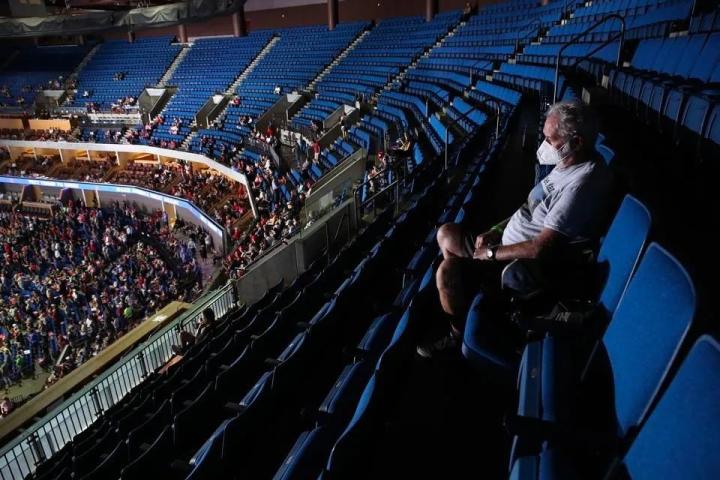 6 月下旬,特朗普在美国图尔萨市搞了场竞选集会。竞选团队特意包了当地的体育馆,结果最后现场只来了 6200 人,能容纳 1.9 万人的场馆空空荡荡——开场前宣扬的超过 100 万门票申请、在外场临时搭建的舞台,像一个个巴掌响亮的甩在特朗普脸上。