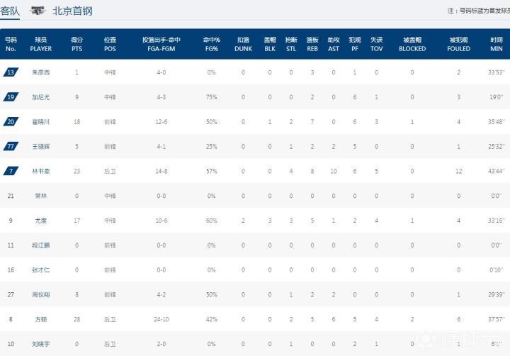 北京首钢:7-林书豪、77-王骁辉、20-翟晓川、19-丘天、13-朱彦西