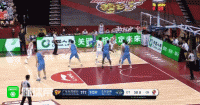 周鹏关键三分打板命中,帮助广东将分差缩小到2分。