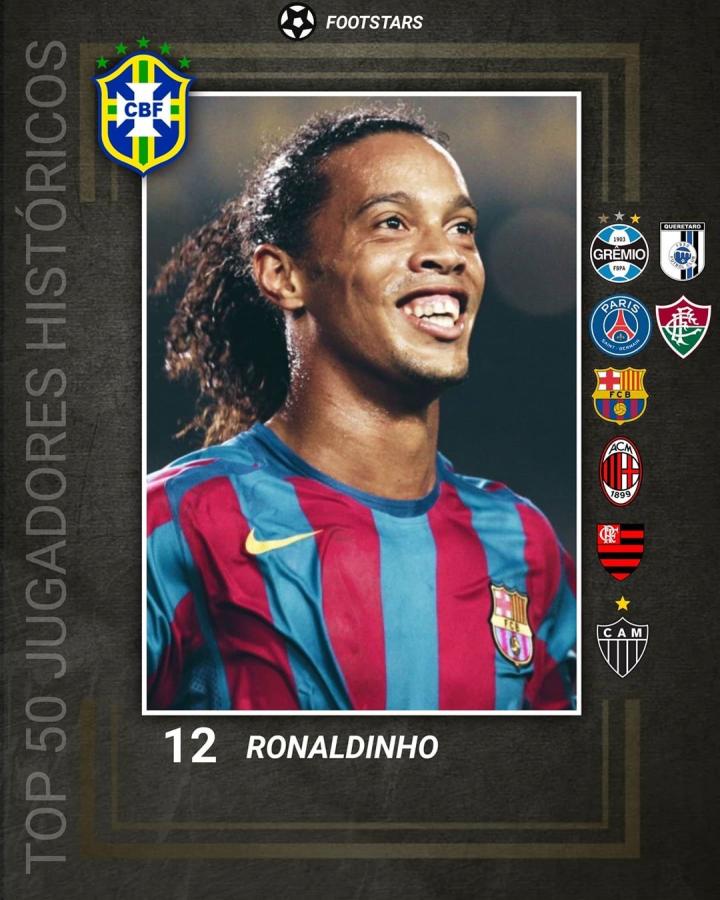 NO.12 罗纳尔迪尼奥(巴西),场上位置:影锋/边锋/前腰