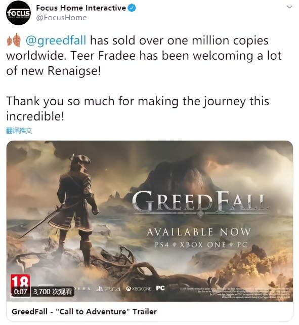 《贪婪之秋》全球销量破百万,官方发推感谢玩家支持