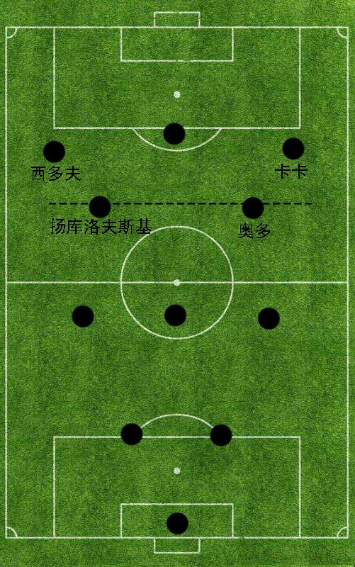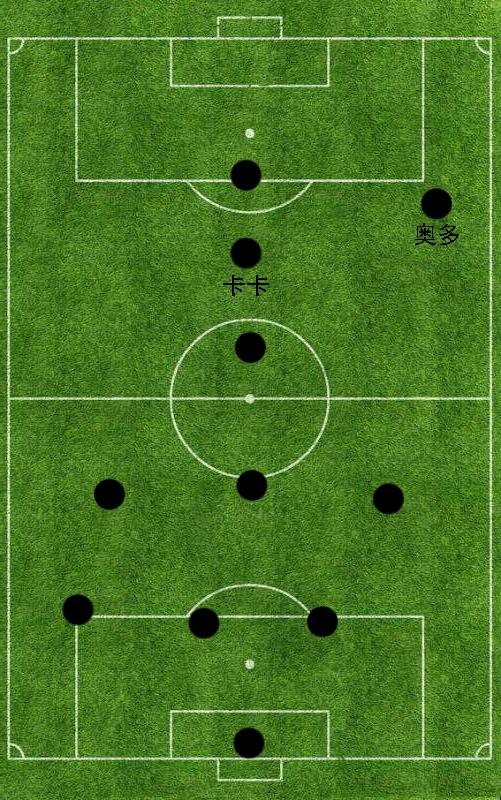当然了,作为一支享誉世界足坛的超级劲旅,AC米兰绝对不会仅仅依靠皮尔洛一人的组织调度立足于世。他们经常会使用的两名前腰--卡卡以及西多夫也能够为球队的进攻带来意想不到的变化。我们以卡卡所在的右路为例,考虑到他们在右边后卫位置上拥有能力极其出色的卡福以及奥多,这两位球员在进攻过程中甚至可以完全承担起边锋的职责,从而侧面解放卡卡,让这位巴西巨星有更多的时间游弋到正对球门的中路,发挥自身进球方面的天赋。