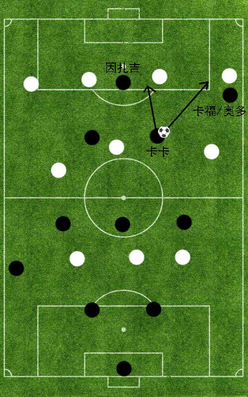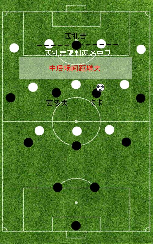 众所周知,因扎吉是当时世界足坛最知名的“反越位高手”。为了限制这位意大利球星在比赛过程中的反越位拿球,不少球队都会严令两名中后卫减少前压幅度,尽最大可能盯防住因扎吉的跑位举动。在这样的背景环境之下,因扎吉每场比赛所获得的绝佳进球机会的确出现了明显的减少,但却会侧面为米兰带来另外一大利好--由于对手后防线不会进行大幅度的前压举动,这样一来中后场两条阵线之间的间距便会被无限拉大,卡卡和西多夫将侧面获得更多的持球空间。