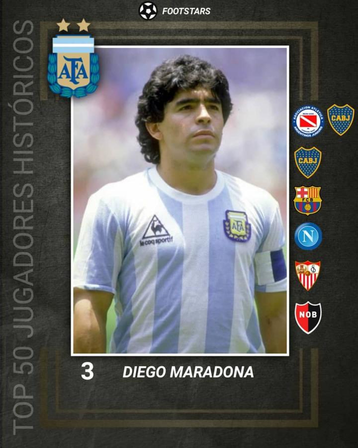 NO.3 马拉多纳(阿根廷),场上位置:前锋/前腰
