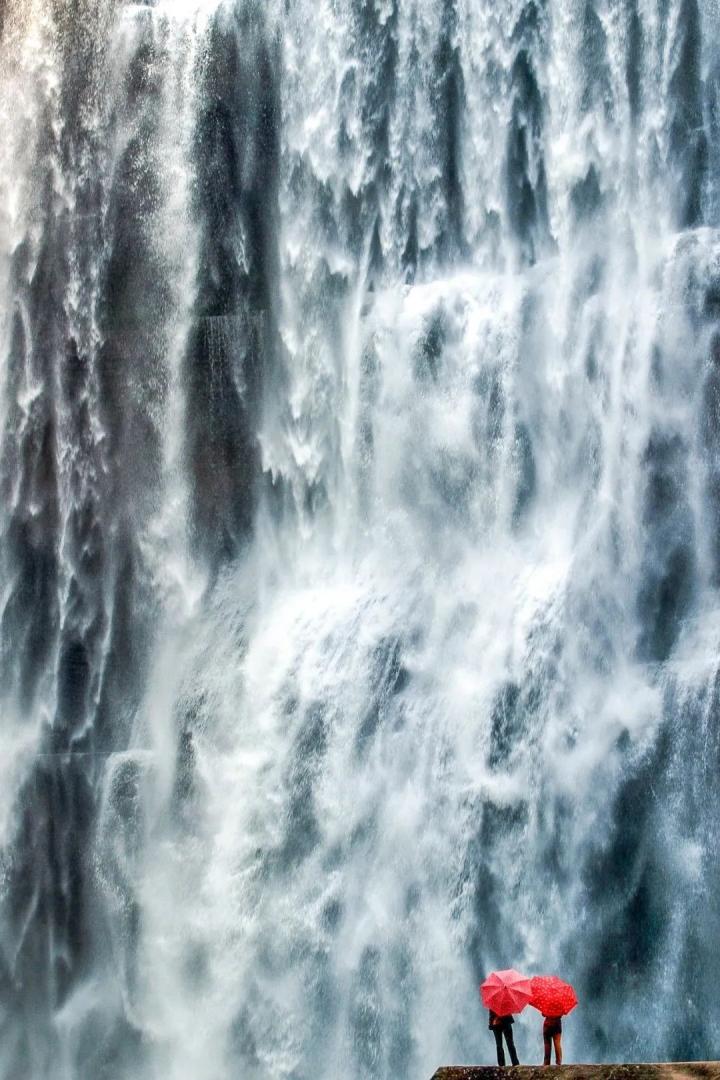 当江河奔流而下偶遇陡坡时,一“失足”倾泻而下,山川间便多了一种迷人的风景。中国人为这种远看如白布垂悬且声势浩大的风景,取了一个诗意的名字——瀑布。