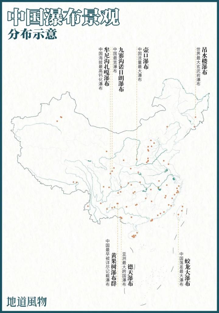 ▲ 中国瀑布景观分布示意图。制图/Paprika