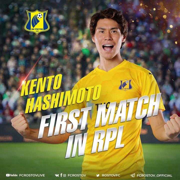 新赛季的俄超在8月8日开幕。首轮比赛罗斯托夫的日本中场桥本拳人在第83分钟替补出场,完成俄超首秀。桥本也是目前俄超唯一的日本球员。