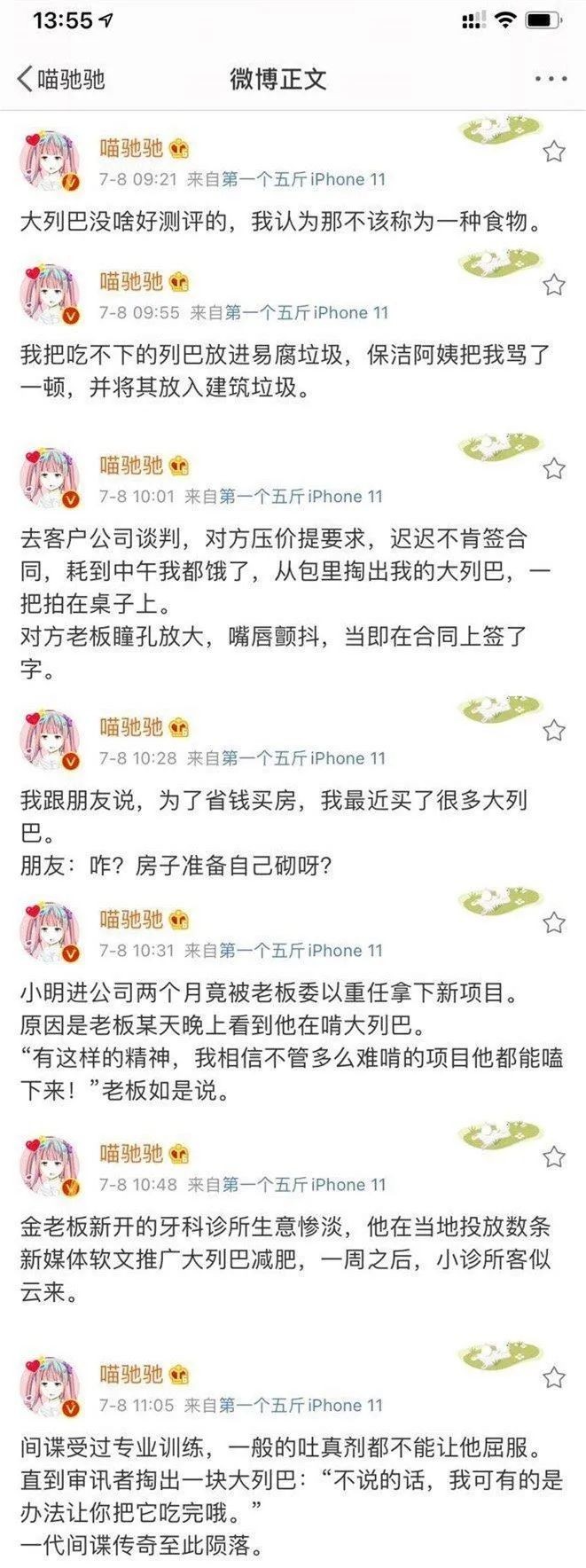 “大列巴”文学,其实就是微博上一位博主,以大列巴为道具,写出的一系列小段子。