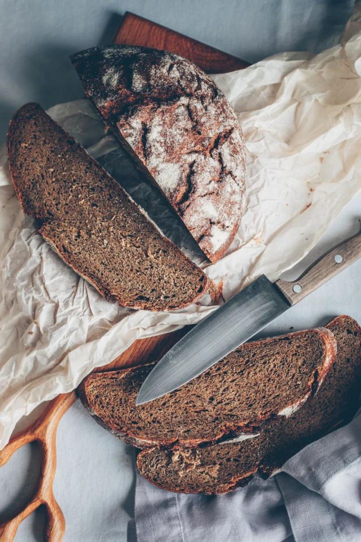 不同于绝大多数面包使用酵母发酵,黑面包使用酒花发酵,主要原料是小麦粉和黑麦粉,并加入小麦胚芽、麸皮等,制作过程耗时很长,制作程序也很复杂,通常需要3天时间。