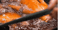 每隔一段时间就需要翻滚一下鹅身,保证鹅身受热均匀的同时,也使鹅身里面的酱料充分的流到鹅肉的每个角落。