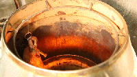 由于井是在地里挖的,周围都是密不透风的泥土,在这种深井中烧烤,炉温更加均匀稳定,烤出来的烧鹅才能皮脆肉嫩。