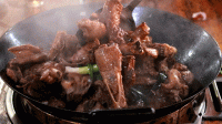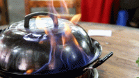 最精彩的莫过于师傅在锅沿点起的这把火,待酒精蒸发后,火焰自然就灭了,揭开锅盖,酒醇肉香扑面而来。