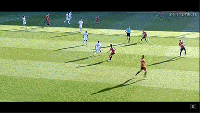 如上图所示,当球队处于进攻状态下,坎特第一时间先会将自己的身位固定在移动更加灵活的中场靠前区域。待到对方防守球员在后场断得球权试图沿左路发动反击时,坎特便会利用自身速度上的优势在短时间内完成拉边贴防。在边路一对一防守过程中,坎特并不会进行盲目伸脚以图可以抢断球权发动二次进攻,他会利用自身底盘轻盈的特点封堵住对方持球人的向前传球路线,逼迫对手只能进行回传尝试。与此同时,坎特的队友们也可以利用前者补防所拖延出来的时间进行合围逼抢,二次进攻机会就此诞生。