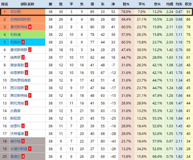 2016~2017赛季英超积分榜