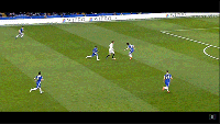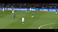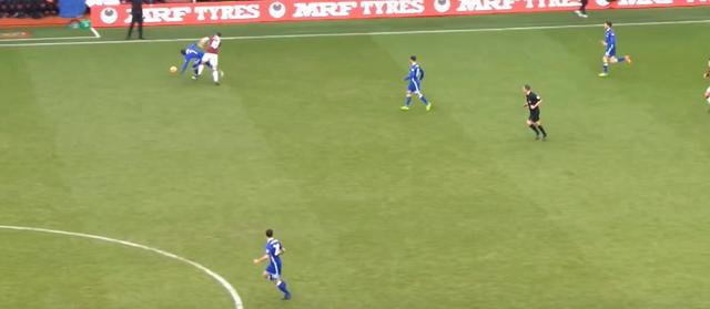 当坎特所领衔的中场拦截线被对方突破后,坎特极快的回追速度也能够对于后卫线起到极大的协防帮助。如上面这张动图所展示的一样,当对方的持球人拿球面对后卫线时,坎特便会利用后卫线对于对方持球能注意力的吸引悄然到位。值得一提的是,在抢球过程中,坎特的出脚速率相当之快,很少会出现被对方使用假动作造成犯规的情况。