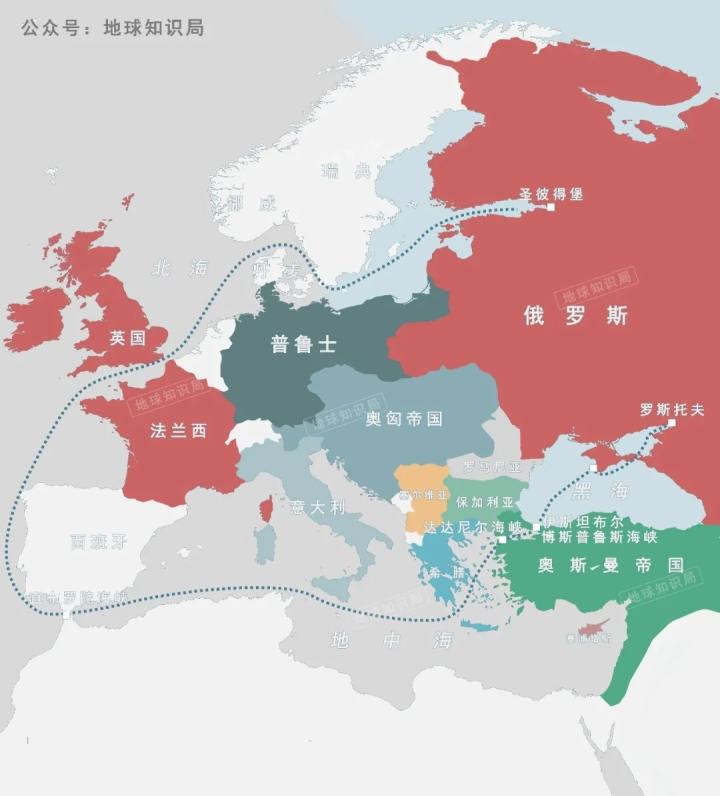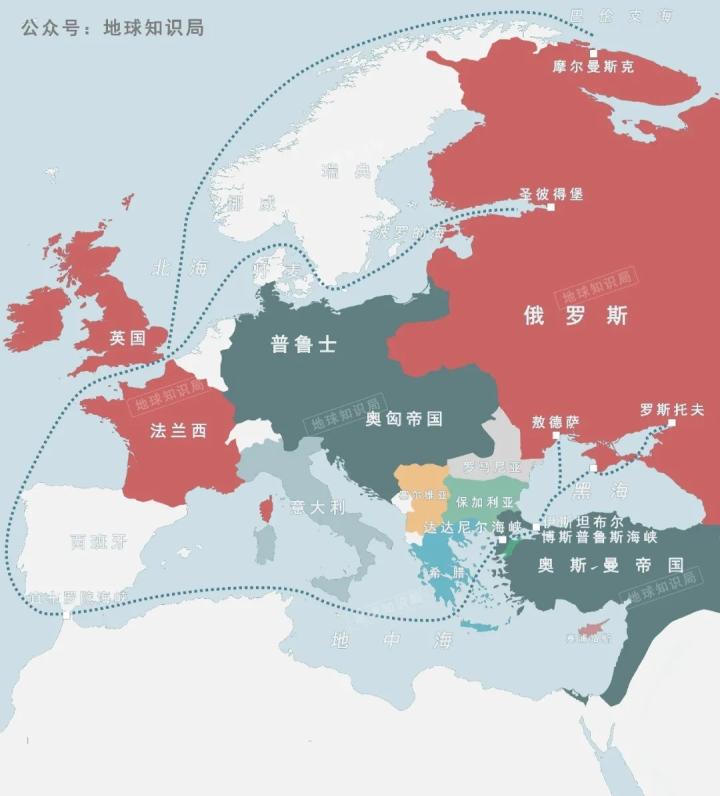 这就意味着,最可行的补给线路就是经过奥斯曼帝国境内的博斯布鲁斯海峡和达达尼尔海峡,由地中海进入马尔马拉海,最终抵达黑海沿岸的俄国港口。