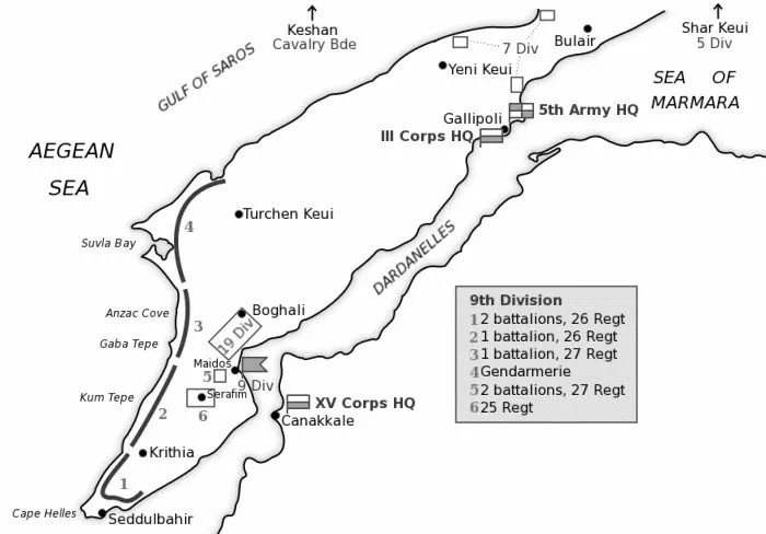 而在另一边,主场作战的奥斯曼人却准备得相当完善。他们的新锐军队由德国军官指挥,并在穆斯塔法·凯末尔中校的建议和指导下准确预测了联军可能的登陆地点。