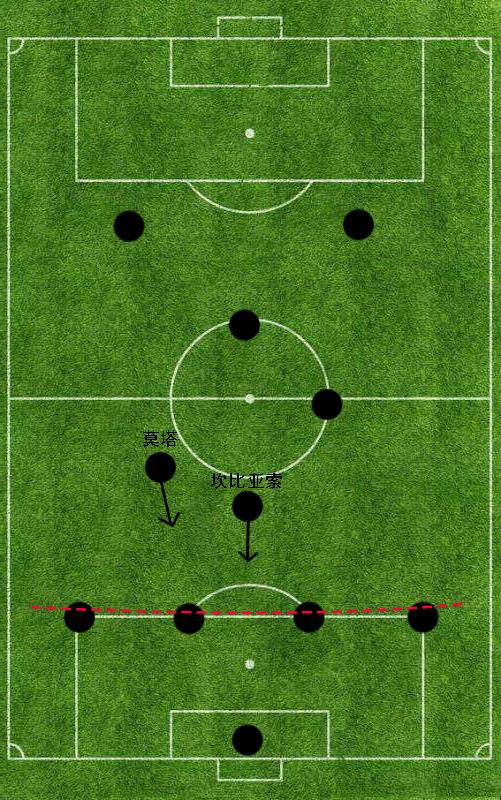 从另外一个角度来讲,即便处于边后卫位置的萨内蒂以及麦孔没有防守住对方的传中,国际米兰也并不会太过于畏惧对方的高空球进攻。萨穆埃尔以及卢西奥的身高虽然都没有突破1米90,但他们两人具有相当出色的瞬间弹跳能力以及皮球落点判断能力,往往能够先于对方的进攻球员拦截传中。除此之外,19号坎比亚索、8号莫塔以及5号斯坦科维奇都会在防守过程中回撤到禁区附近,他们既可以对于二点球形成有效保护,也能够成为球队反击过程中的第一出球人。