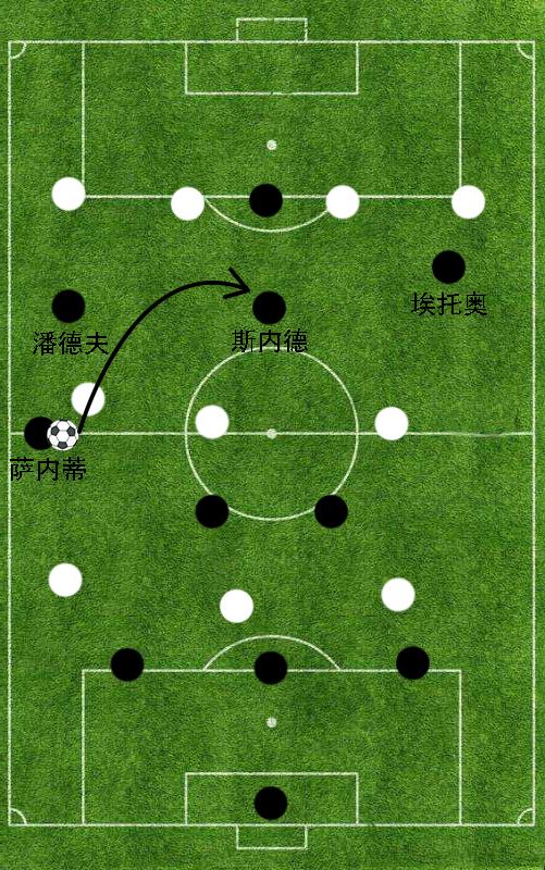 不少球迷朋友看到这里可以稍有不解:由于萨内蒂在进攻过程中压上幅度不大,国米在左边路能够进入对手防守腹地的球员只有潘德夫一人,仅仅依靠他一人之力能够完成边路威胁进攻吗?这一问题其实非常简单,潘德夫想要在阵地进攻突入对手防守腹地自然非常困难,但他如果作为一个突然接球人,就能够起到意想不到的效果。