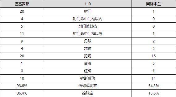从双方的比赛数据来看,国际米兰仅仅只有13.6%的控球率,射门数更是只有可怜的1脚。但正是在如此不利的环境下,穆里尼奥坚韧的防守哲学让巴塞罗那引以为傲的传控打法完全失去风采。尽管红蓝军团由皮克打入一球,但首回合的劣势依旧让他们惨遭淘汰。