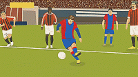 巴萨在欧冠四分之一决赛首回合对阵米兰的比赛中,凭借禁区边缘的两粒进球,轻松扭转了2比0落后的局面,尽管他被防守队员包围,但他一脚触球就将球送入网窝,一个高射到右上角,另一个低射到门将左下角。