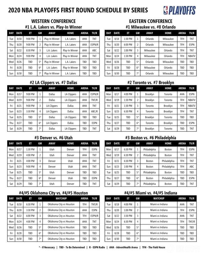 北京时间8月14日消息,随着常规赛的收官,2020年季后赛赛程出炉。